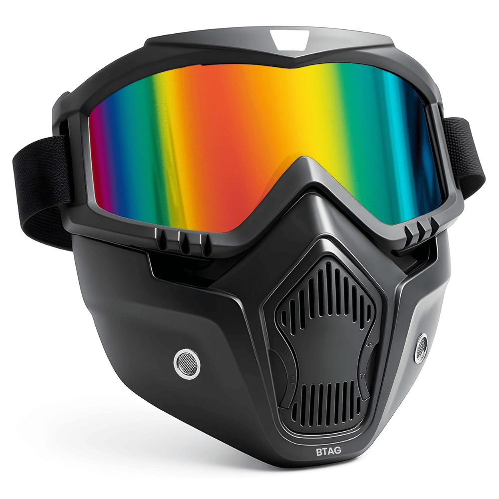 Anti-Scratch UV Protective Motorcycle Face Mask with Detachable Goggles | Anti-Fog Full Face Windproof Riding Mask with Breathable Filter | Biker Safety Shield (Rainbow)